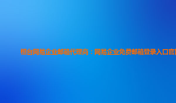作为桓台网易企业邮箱代理商,我们将为您介绍网易企业免费邮箱的优势。