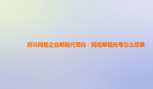 府谷网易企业邮箱代理商