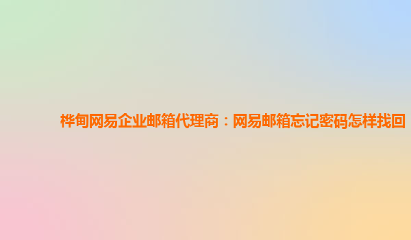 网易企业邮箱代理商:网易邮箱忘记密码怎样找回来