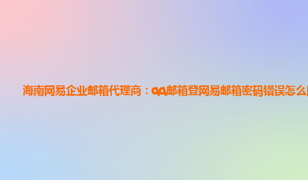 海南网易企业邮箱代理商:qq邮箱登网易邮箱密码错误怎么回事