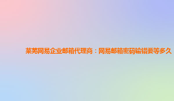 莱芜网易企业邮箱代理商:网易邮箱密码输错要等多久