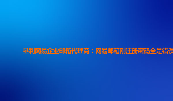 垦利网易企业邮箱代理商:解决网易邮箱刚注册密码全是错误