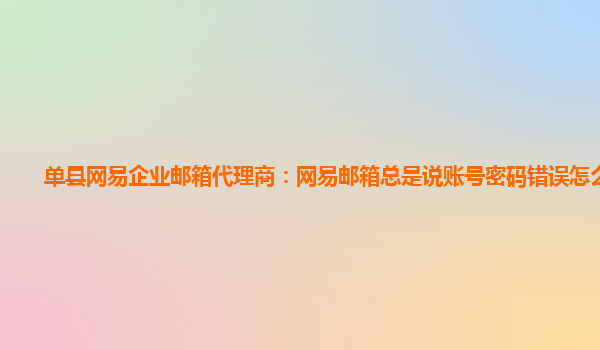 单县网易企业邮箱代理商:网易邮箱总是说账号密码错误怎么回事