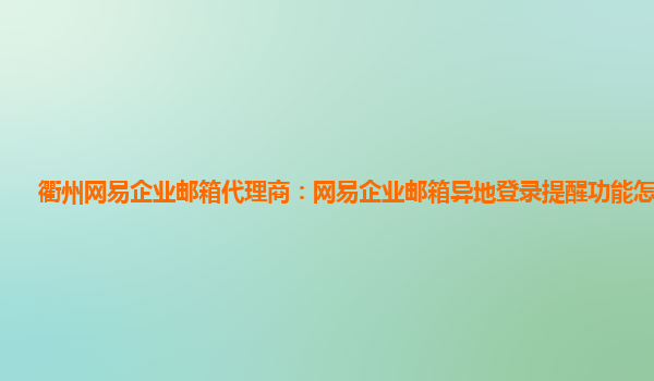 网易企业邮箱异地登录提醒功能怎么关闭