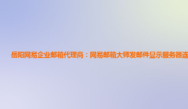 岳阳网易企业邮箱代理商:网易邮箱大师发邮件显示服务器连接失败