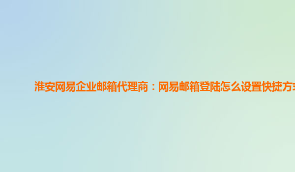 淮安网易企业邮箱代理商:网易邮箱登陆怎么设置快捷方式