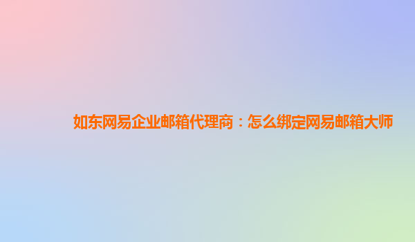 如东网易企业邮箱代理商:怎么绑定网易邮箱大师