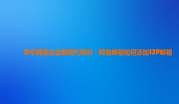 阜宁网易企业邮箱代理商:网易邮箱如何添加139邮箱