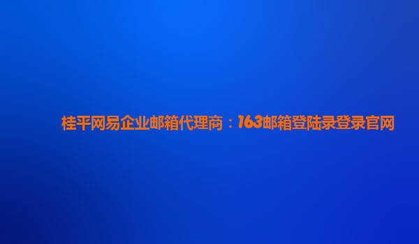 桂平网易企业邮箱代理商:163邮箱登陆录登录官网