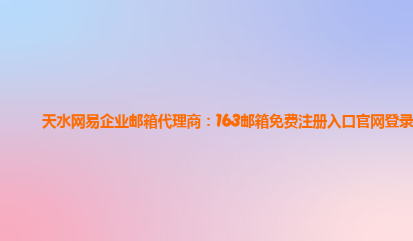 天水网易企业邮箱代理商:163邮箱免费注册入口官网登录