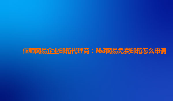 偃师网易企业邮箱代理商:163网易免费邮箱怎么申请