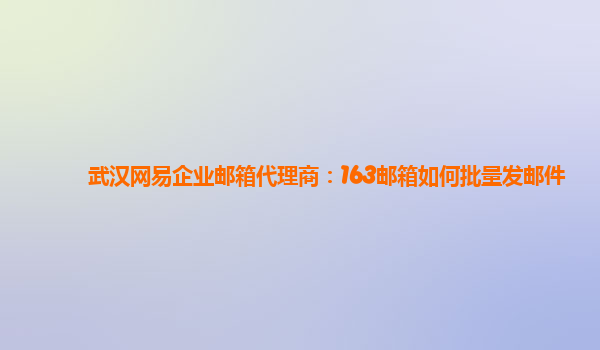 武汉网易企业邮箱代理商:163邮箱如何批量发邮件
