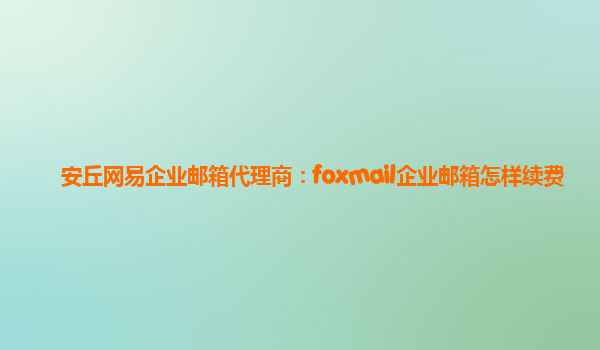 安丘网易企业邮箱代理商:foxmail企业邮箱怎样续费