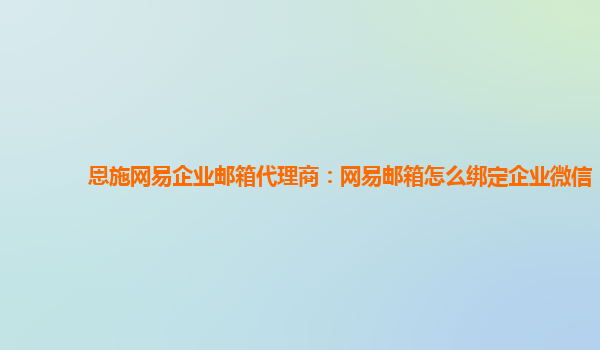恩施网易企业邮箱代理商:网易邮箱怎么绑定企业微信