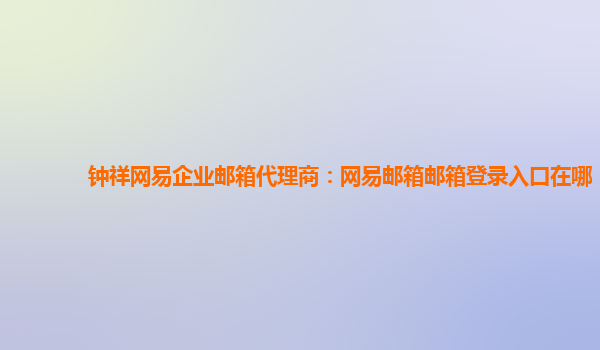 网易企业邮箱代理商:网易邮箱邮箱登录入口在哪