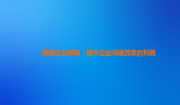 网易企业邮箱:提升企业沟通效率的利器
