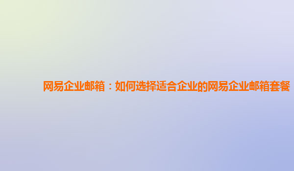 在现代企业运营中,电子邮件已成为沟通与协作的核心工具之一,尤其是对于中大型企业来说,如何选择一款稳定、安全、功能齐全的企业邮箱服务尤为重要。网易企业邮箱作为国内领先的企业邮箱服务提供商,以其稳定性、强大的功能和高效的服务受到众多企业的青睐。那么,如何选择适合自己企业的网易企业邮箱套餐呢?本文将从网易企业邮箱的优势和使用感受出发,为您解答这一问题。