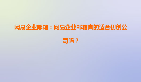 网易企业邮箱:网易企业邮箱真的适合初创公司吗?