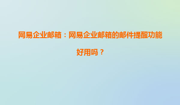 网易企业邮箱:网易企业邮箱的邮件提醒功能好用吗?