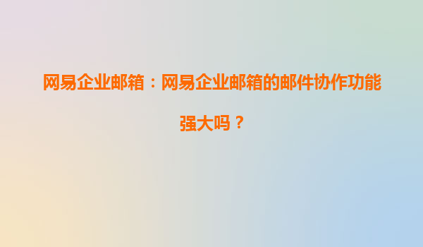 网易企业邮箱:网易企业邮箱的邮件协作功能强大吗?
