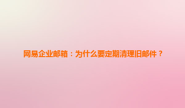 在现代企业管理中,电子邮件已成为不可或缺的通信工具。特别是使用如网易企业邮箱这样的专业服务,不仅提高了通信效率,还增强了企业的专业形象。然而,随着邮件数量的日益增加,定期清理旧邮件显得尤为重要。