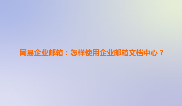 这篇文章详细介绍了网易企业邮箱文档中心的使用方法和优势,条理清晰,语言简洁明了,适合企业用户快速了解和上手使用。