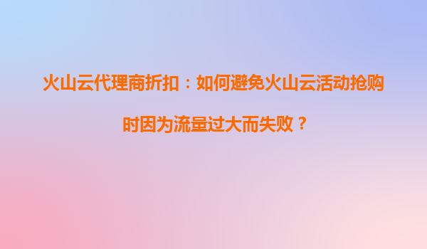 2025-10-22火山云代理商折扣:如何避免火山云活动抢购时因为流量过大而失败? 随着云计算服务的普及,火山云作为国内领先的云服务提供商,凭借高性能、高可靠性和极具竞争力的价格,吸引了大量企业和个人用户。每逢促销活...