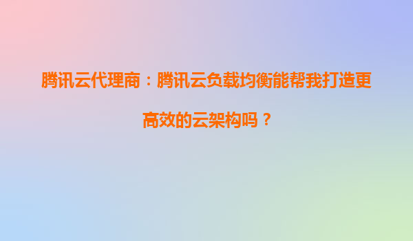 2025-10-22腾讯云代理商:腾讯云负载均衡能帮我打造更高效的云架构吗? 引言:云架构的效率挑战与负载均衡的价值 在数字化转型的浪潮中,企业上云已成为提升业务敏捷性和降低成本的关键选择。然而,...