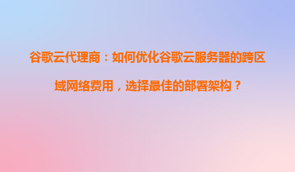 2025-10-22谷歌云代理商:如何优化谷歌云服务器的跨区域网络费用,选择最佳的部署架构? 谷歌云的优势 谷歌云(GoogleCloud)作为全球领先的云计算平台之一,以其高性能、高可靠性和全球化的基础...