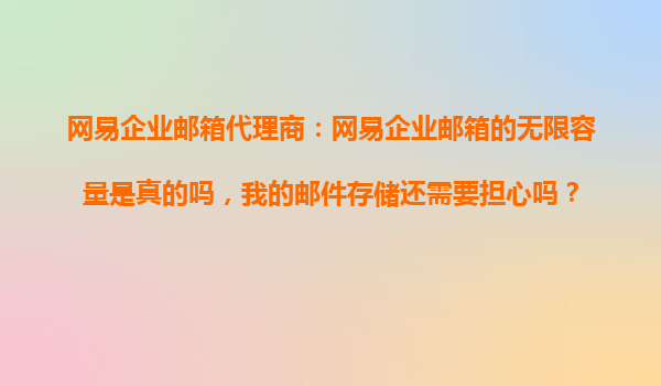 2025-10-22网易企业邮箱代理商:网易企业邮箱的无限容量是真的吗,我的邮件存储还需要担心吗? 在企业数字化办公的时代,邮箱作为核心沟通工具之一,其稳定性和存储容量直接关系到企业的运营效率。网易企业邮箱作为国...