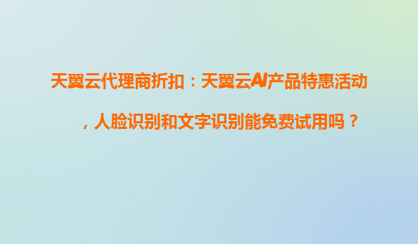 2025-10-22天翼云AI产品特惠活动解析:人脸识别与文字识别免费试用指南 一、天翼云代理商折扣活动概述 天翼云作为中国电信旗下云计算品牌,凭借央企背景与强大的基础设施能力,持续为代理商...