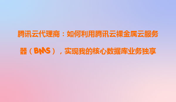 2025-10-22腾讯云代理商:如何利用腾讯云裸金属云服务器(BMS)实现核心数据库业务独享资源 一、核心数据库的资源需求与挑战 对于企业核心数据库业务而言,稳定的性能、低延迟和高安全性是核心诉求...