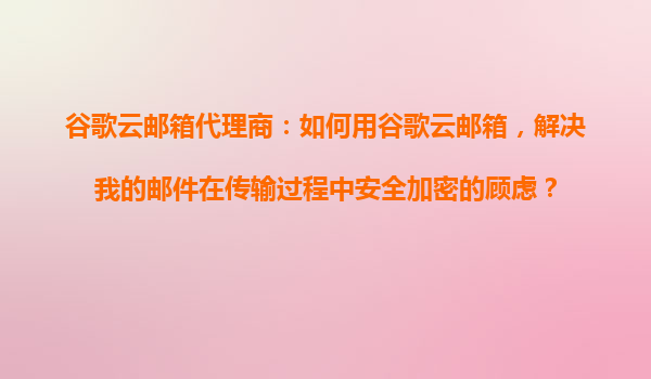2025-10-22如何利用谷歌云邮箱解决邮件传输中的安全加密顾虑 引言:邮件安全的重要性 在数字化时代,电子邮件已成为企业和个人沟通的重要工具。然而,邮件在传输过程中的安全性和隐私性一直是用户关注的焦点。黑客攻...