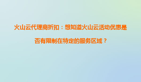 2025-10-22火山云代理商折扣:活动优惠是否受服务区域限制? 一、火山云的服务区域覆盖 火山云作为国内领先的云计算服务提供商,其基础设施覆盖全球多个区域,包括中国大...