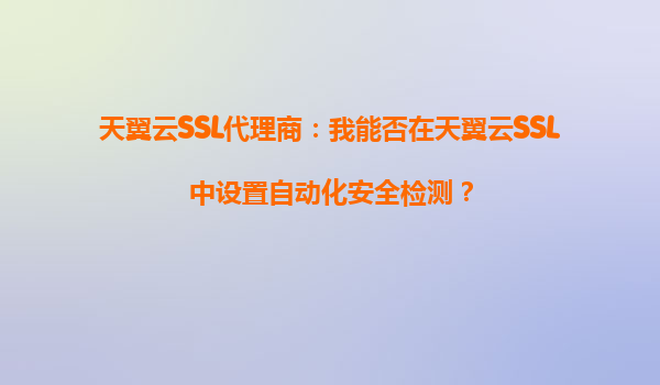 2025-10-22天翼云SSL代理商:能否在天翼云SSL中设置自动化安全检测? 一、天翼云SSL的核心优势 天翼云作为中国电信旗下的云计算服务品牌,凭借其强大的基础设施和丰富的行业经验,在SSL证书服务领域具备显著优势...