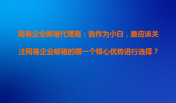 网易企业邮箱代理商:我作为小白,最应该关注网易企业邮箱的哪一个核心优势进行选择? 作者:企业邮箱探索者 作为初次接触企业邮箱的小白,面对众多品牌和功能,如何选择最适合自己的企业邮箱服务?网...