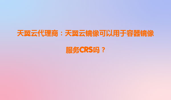2025-10-21天翼云镜像可以用于容器镜像服务(CRS)吗? 一、天翼云镜像与容器镜像服务(CRS)的关系 天翼云镜像服务是天翼云提供的虚拟化镜像管理平台,支持用户上传、管理和分发系统镜像、应用镜像等。而容器镜像服...