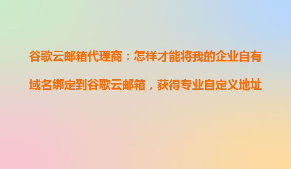 2025-10-21谷歌云邮箱代理商指南:如何绑定企业自有域名到谷歌云邮箱 在当今数字化时代,企业电子邮件不仅是沟通工具,更是品牌形象的重要组成部分。使用专业的企业邮箱地址(如yourname@yourcompany.com)能够大幅提升企...