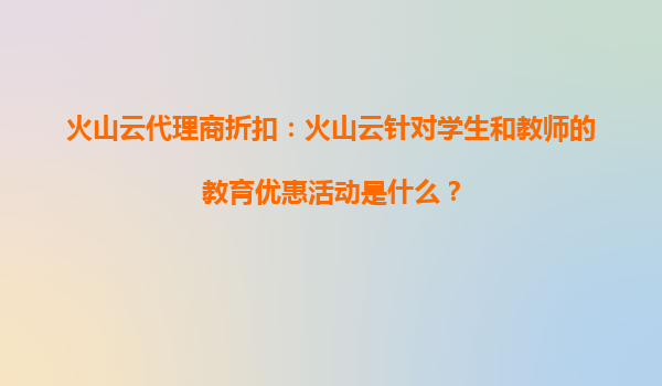2025-10-21火山云代理商折扣:火山云教育优惠活动详解 一、引言 随着云计算技术的快速发展,越来越多的教育机构和个人开始利用云服务进行教学、科研和学习。火山云作为国内领先的云计算服务提供商,一直致力于为不同...