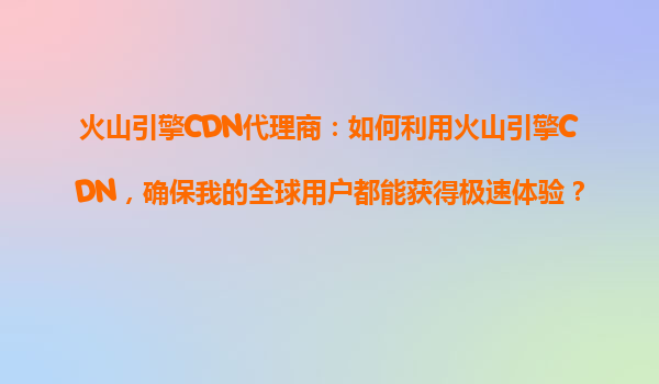 2025-10-21火山引擎CDN代理商:如何利用火山引擎CDN,确保我的全球用户都能获得极速体验? 一、火山引擎CDN的核心优势 火山引擎CDN(内容分发网络)作为字节跳动旗下的云服务产品,依托其全球化的...