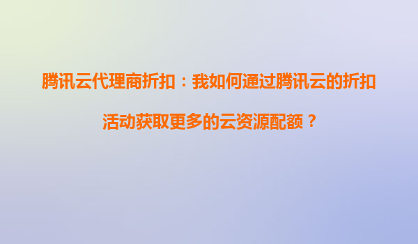 2025-09-17腾讯云代理商折扣:如何通过折扣活动获取更多云资源配额? 一、腾讯云的核心优势 在探讨如何通过代理商获取折扣前,首先需要了解腾讯云的核心竞争力: ...