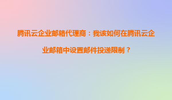 2025-09-17腾讯云企业邮箱代理商指南:如何设置邮件投递限制 1.腾讯云企业邮箱的核心优势 作为国内领先的云计算服务商,腾讯云企业邮箱凭借以下优势为代理商提供强大支持: 高可用架构-基于腾讯全球数据中心部署,99....