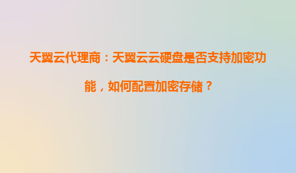 2025-09-17天翼云代理商:天翼云云硬盘是否支持加密功能及配置指南 在当今数字化时代,数据安全已成为企业和个人用户最关心的问题之一。云存储作为数据存储和管理的核心工具,其安全性至关重要。天翼云作为国内...