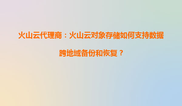 2025-09-17火山云对象存储如何支持数据跨地域备份和恢复 一、数据跨地域备份的核心需求 在数字化时代,企业数据已成为核心资产。为确保业务连续性并满足合规要求,跨地域备份成为刚需: ...