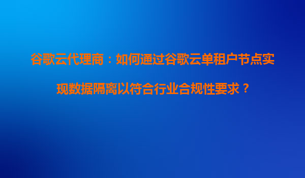 2025-09-17谷歌云代理商:如何通过谷歌云单租户节点实现数据隔离以符合行业合规性要求? 引言:数据隔离与合规性的重要性 在数字化转型加速的今天,企业对数据安全与合规性的要求日益严格。尤其是...