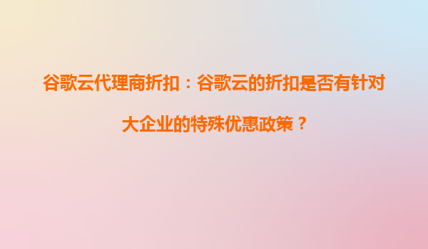 2025-09-17谷歌云代理商折扣:谷歌云的折扣是否有针对大企业的特殊优惠政策? 一、谷歌云的独特优势 谷歌云(GoogleCloudPlatform,GCP)作为全球领先的云计算服务提供商,凭借其强大的基础设施、先进的技术...