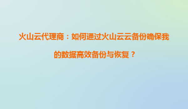 2025-09-17火山云云备份:数据高效备份与恢复的最佳实践 一、为什么选择火山云云备份? 在数字化转型浪潮中,数据已成为企业核心资产。火山云云备份服务凭借其强大的技术实力和完善的基础设施,为用户提供安全、高效、可...