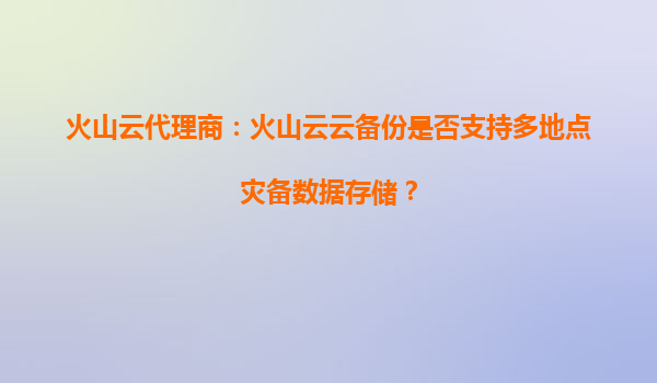 2025-09-17火山云代理商:火山云云备份是否支持多地点灾备数据存储? 引言:数据灾备的核心需求与挑战 在数字化转型加速的今天,企业数据的可靠性与业务连续性成为关键诉求。多地点灾备(Multi-SiteDisasterRecovery)通过...