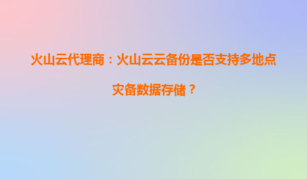 2025-09-17火山云代理商:火山云云备份是否支持多地点灾备数据存储? 引言:数据灾备的核心需求与挑战 在数字化转型加速的今天,企业数据的可靠性与业务连续性成为关键诉求。多地点灾备(Multi-SiteDisasterRecovery)通过...