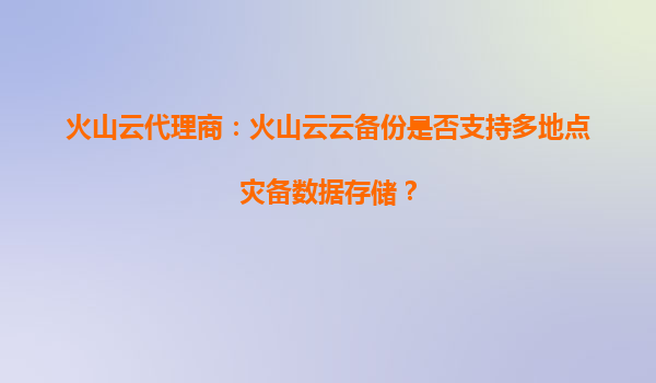 2025-09-17火山云代理商:火山云云备份是否支持多地点灾备数据存储? 引言:数据灾备的核心需求与挑战 在数字化转型加速的今天,企业数据的可靠性与业务连续性成为关键诉求。多地点灾备(Multi-SiteDisasterRecovery)通过...